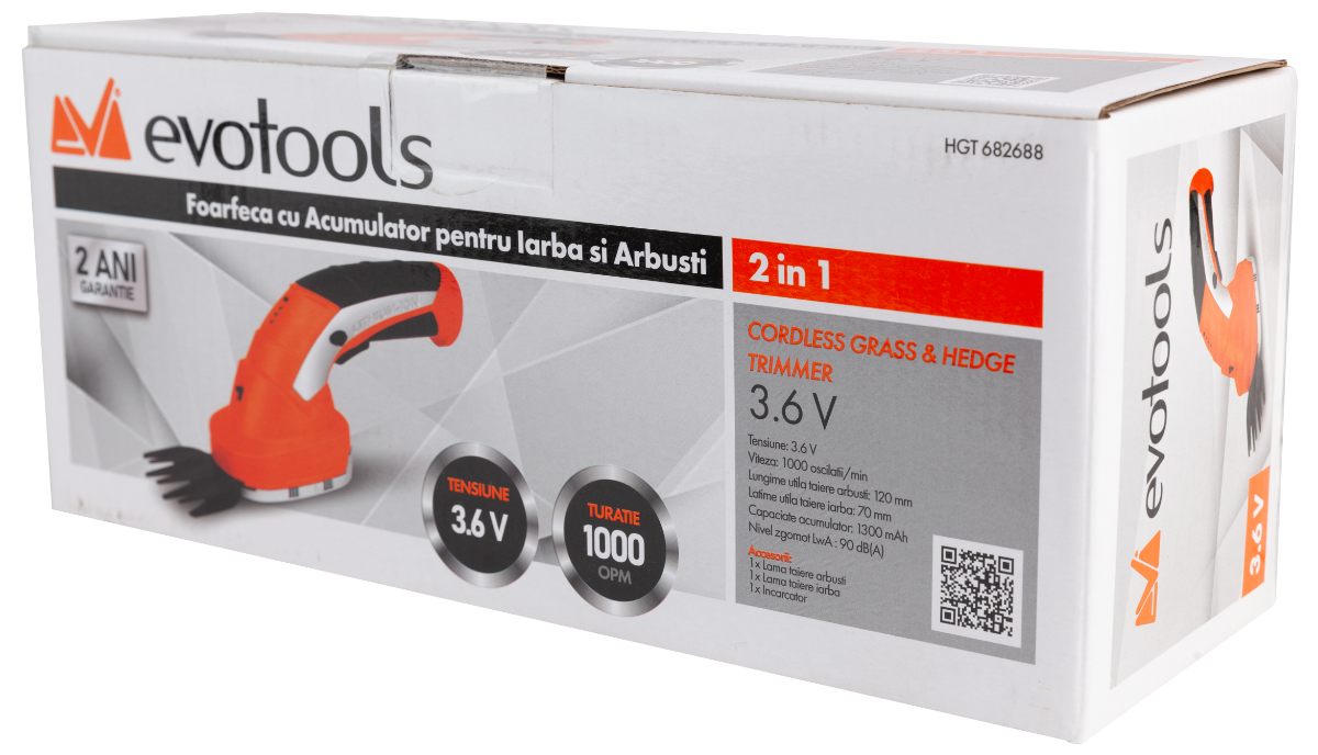 Акумулаторната ножица за трева и храсти 2 в 1 EvoTools® е идеален помощник за подрязване на краищата на тревата и оформяне на декоративни храсти. По-късото острие е предназначено за рязане на краищата на тревата, а по-дългото се използва за оформяне на декоративни храсти.