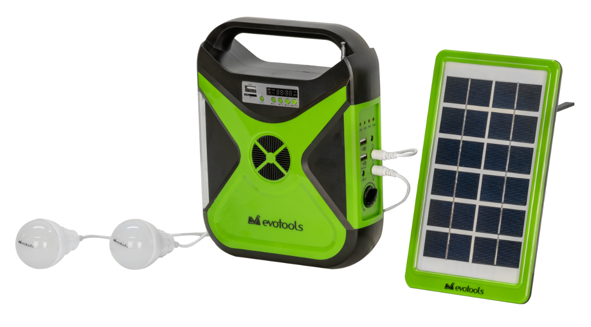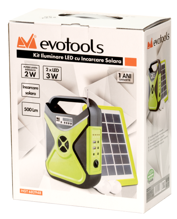 LED осветителен комплект със соларно зареждане, 2 крушки, радио и USB порт