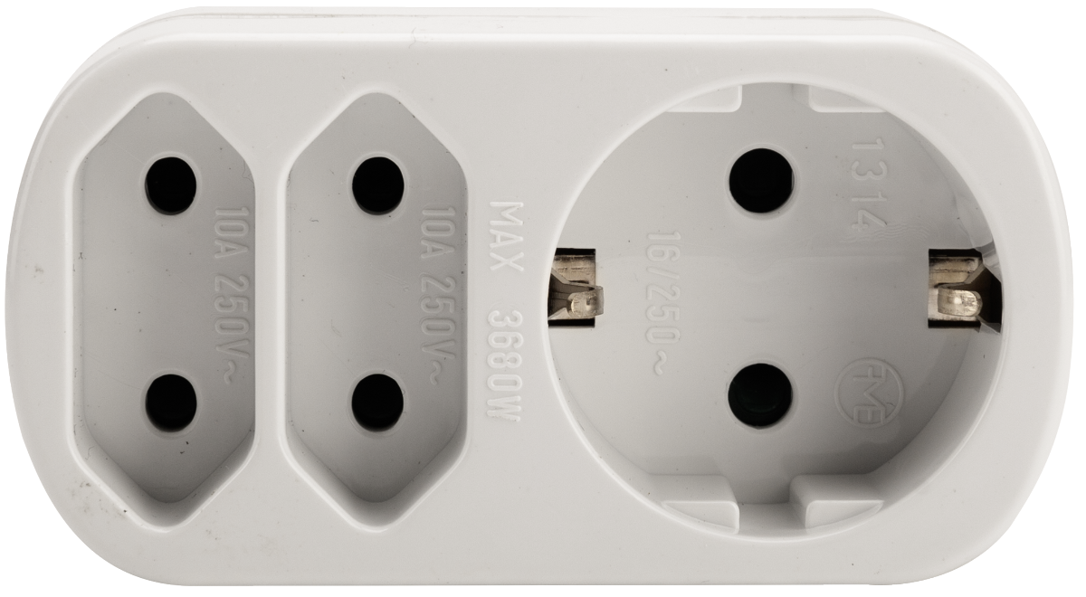 Адаптерът 2043 предоставя три Schuko контакта от един източник, идеален за едновременно захранване на няколко уреда. Компактен дизайн, здрава конструкция и съвместимост с европейските стандарти – перфектен за дома или офиса, напрежение 230V 16 A, 2P+E.