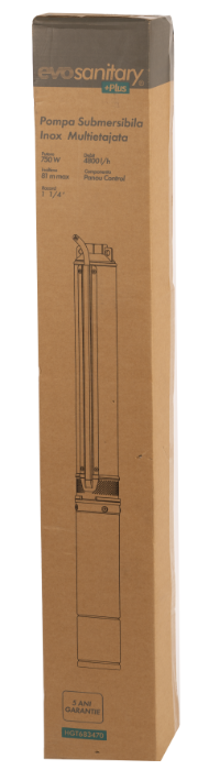 Описание:Потопяема Центробежна Помпа 750W, Неръждаема Стомана, 12 Турбини, Контролен Панел, Повишена Устойчивост на Пясък EvoSanitary +Plus®.