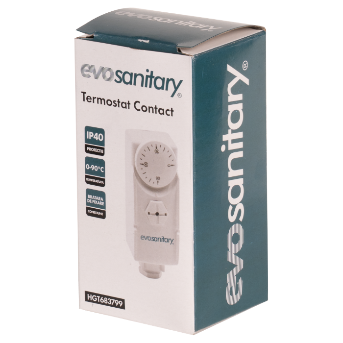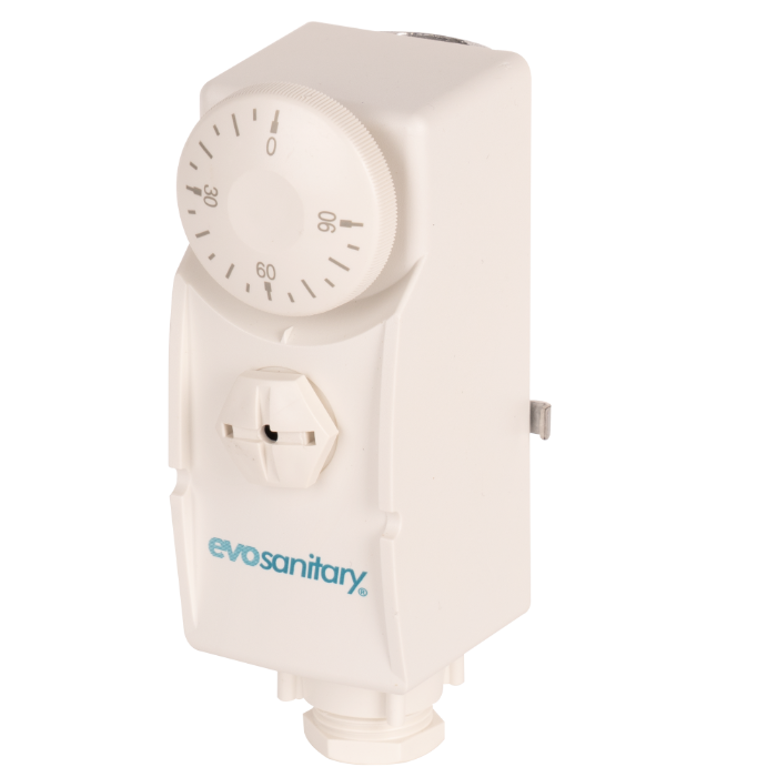 Контактният термостат EvoSanitary® е проектиран за прецизно наблюдение и контрол на температурата в индустриални и битови приложения. С диапазон на настройка на температурата между 0 и 90°C това устройство осигурява надеждна работа при различни работни условия.