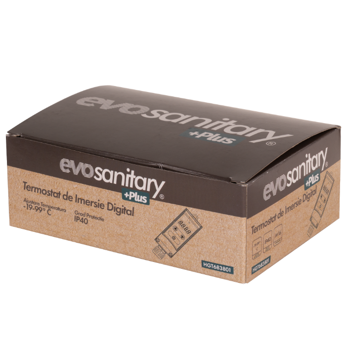 Дигиталният потопяем термостат EvoSanitary +Plus® е усъвършенствано устройство, предназначено за контрол на температурата в отоплителни, охлаждащи инсталации или системи за подготовка на битова гореща вода. Той измерва температурата на течността чрез потопяем сензор και автоматично регулира работата на циркулационната помпа или други свързани електрически уреди, като по този начин осигурява оптимален климат и енергийна ефективност.