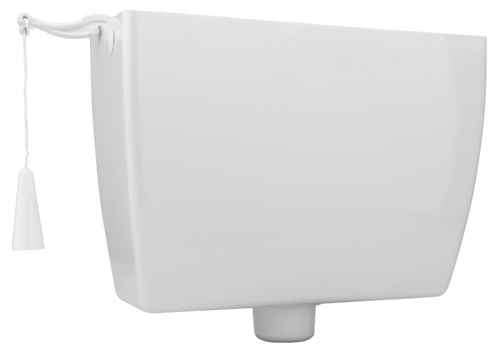 Резервоар от ABS за висок монтаж с възможност за водозахранване отляво или отдясно.