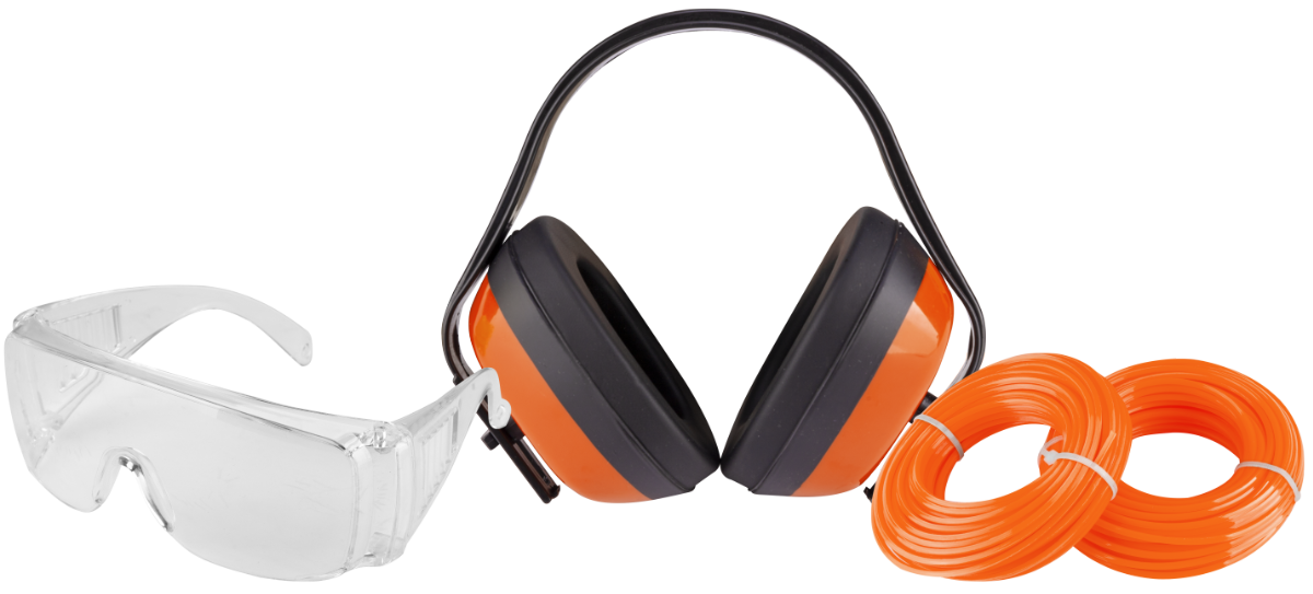 Комплектът за храсторез е набор от основни аксесоари, които подобряват както безопасността, така и ефективността при работа с храстореза. Този комплект съдържа следните компоненти: Защитни очила: Защитните очила са предназначени да предпазват очите на потребителя от частици трева, камъчета или други обекти, които могат да бъдат изхвърлени по време на рязане с храстореза. Те осигуряват зрителна безопасност и предотвратяват възможни очни травми. Антифони: Антифоните са оборудвани със защита на слуха и са предназначени да предпазват ушите на потребителя от силните шумове, произвеждани от двигателя на храстореза. Тези антифони намаляват излагането на прекомерен шум и предотвратяват увреждане на слуха. Ролки найлонова корда (2 бр.): Тези ролки с найлонова корда се използват като режещ материал в храстореза. Монтират се на режещата глава и служат за рязане на трева, плевели и друга растителност. Спецификации: Защитни очила: Изцяло изработени от прозрачен поликарбонат с дебелина 2 mm, много леки и удобни. Антифони: Много леки и удобни външни антифони, изработени от пластмаса, с гъвкава лента за глава и шумопоглъщащ полиуретанов дунапрен. Тези антифони намаляват шума с 25 dB. Ролки найлонова корда: Влакна, предназначени за рязане на трева, плевели и друга растителност, изработени от много издръжлива синтетична пластмаса. Използването на този комплект за храсторез допринася за повишаване на безопасността и ефективността на потребителя по време на работа. Важно е потребителите винаги да спазват мерките за безопасност и да използват подходящо защитно оборудване, за да избегнат инциденти и наранявания при работа с храстореза.