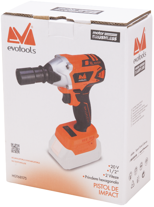 1. Общи > 107. Електроинструменти > 6435. Безчетков Гайковерт 1/2 без Батерия и Зарядно EvoTools®